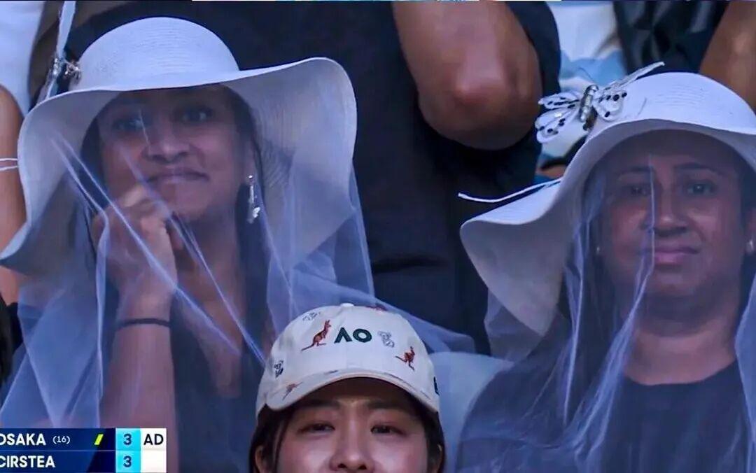 在大坂直美2026年澳网的第二轮,她依旧穿着同一身“水母”概念的比赛服装出场,只不过她头上的面纱白帽出现在了观众席,粉丝们用自己的行动表达了对大坂选手的支持。